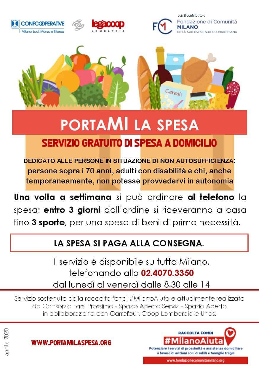 Consorzio Farsi Prossimo, tramite le sue cooperative socie, è tra i promotori del servizio “PortaMI la spesa”, per la consegna gratuita a domicilio della spesa.